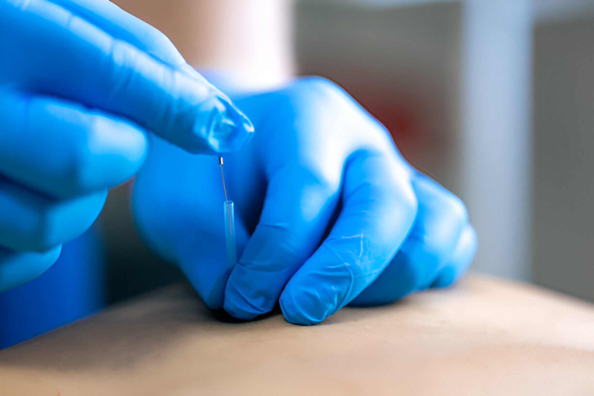 Bij acupunctuur worden vaak meerdere naalden in het lichaam geprikt, die daar enige tijd blijven zitten. Bij Dry Needling wordt een naald gebruikt, waarmee kortdurend de spier wordt behandeld. Dry Needling werkt direct in op de spieren en is geen ’energie’ behandeling en is niet te vergelijken met acupunctuur.